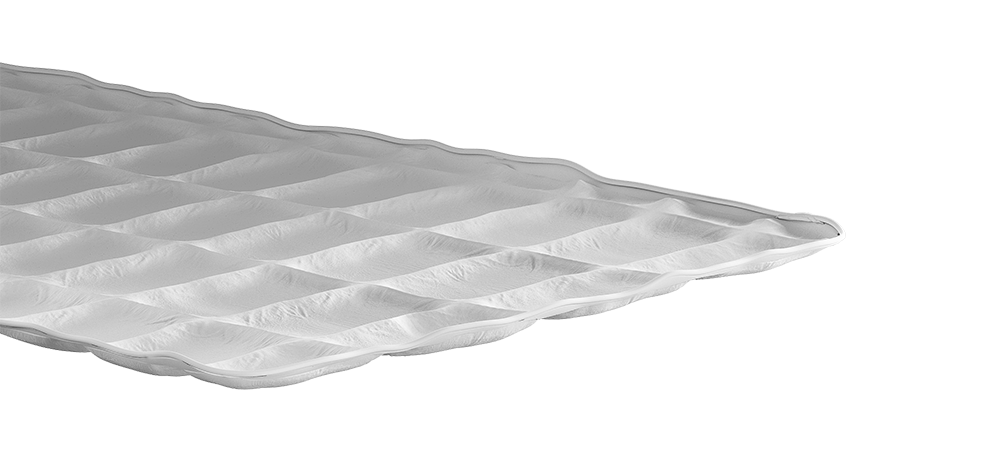 Верхнее покрытие изготовлено из материала 50% тенсель и 50% полиэстер. Тенсель - натуральная ткань, производимая из лиоцелловых волокон, полученных в результате нанообработки древесины, с добавлением нитей хлопка, бамбука, шерсти, шелка или вискозы. Для придания прочности в полотно добавляют волокна синтетических тканей (не более 20%). Тенсель - прочная, износостойкая и в то же время мягкая и приятная на ощупь. Материал используют в производстве постельного белья, подушек, одеял, чехлов, наматрасников.